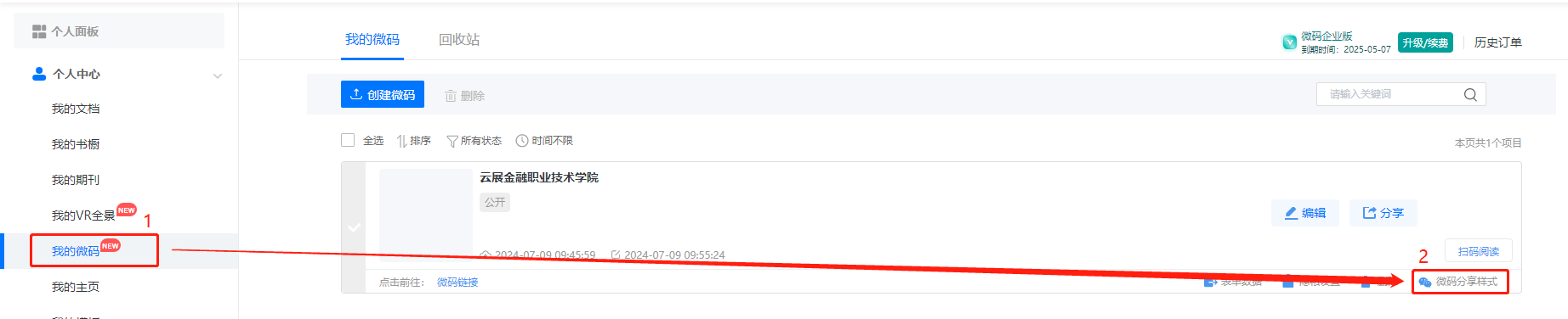 (1)點擊【我的微碼】,選擇需要設置的微碼,點擊【微碼分享樣式】。