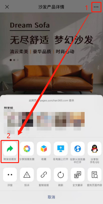 (2)打開微信掃一掃,掃描二維碼打開微碼,點擊右上角三個點【…】,點擊【轉發(fā)給朋友】,即可將微碼以標題、描述、縮略圖的形式分享給微信好友。