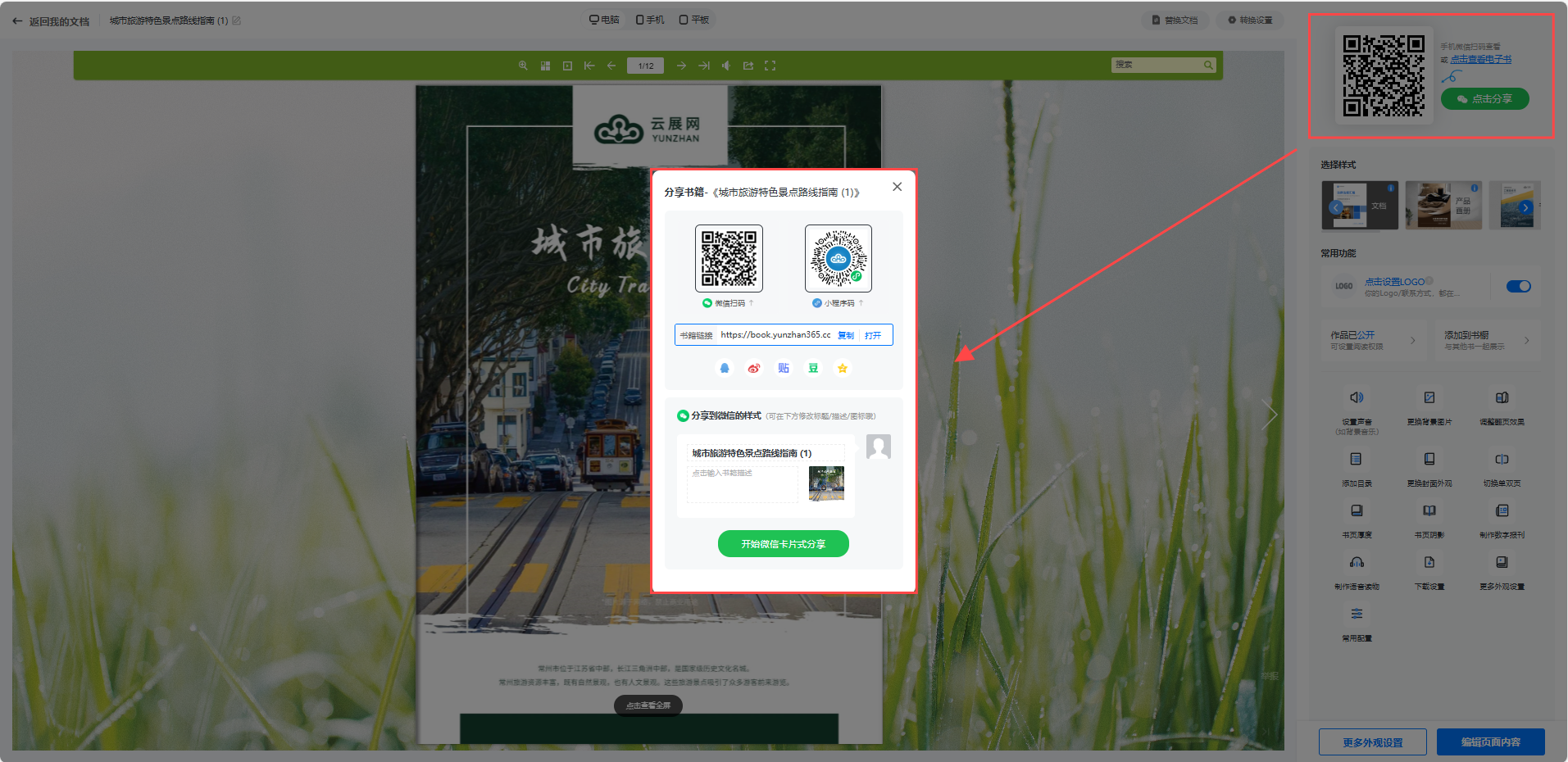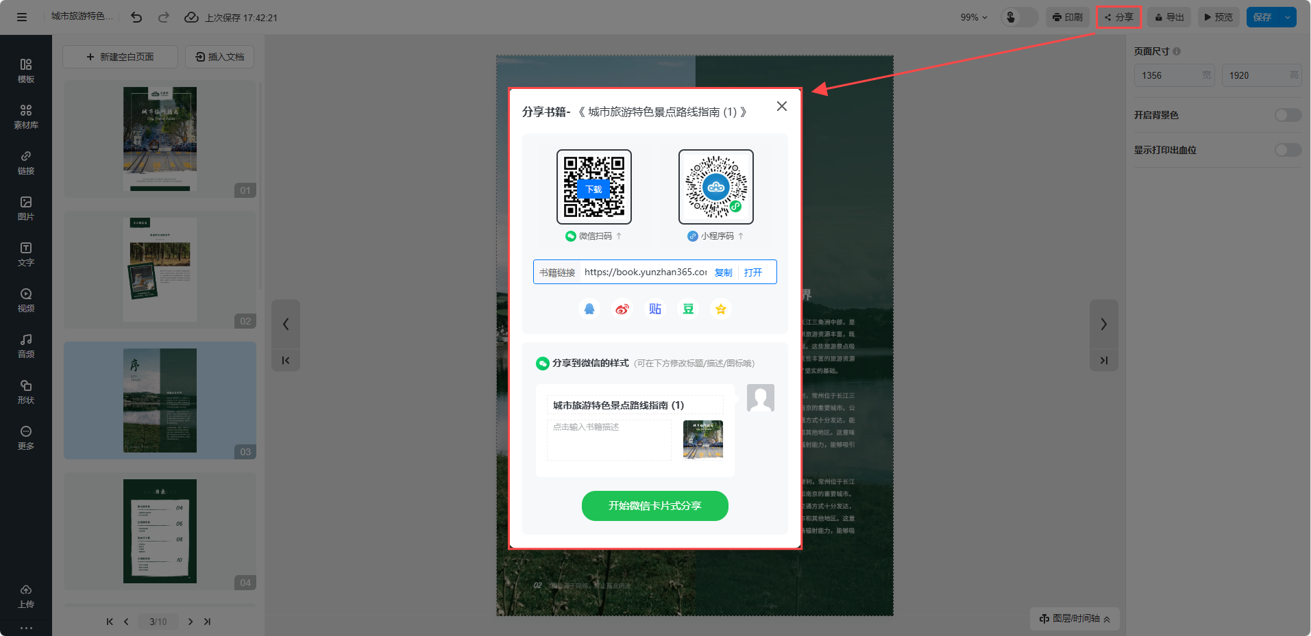點(diǎn)擊【保存】按鈕,保存后的電子書(shū),可以點(diǎn)擊【分享】發(fā)送到朋友圈或通過(guò)鏈接/二維碼分享到微信/QQ好友。