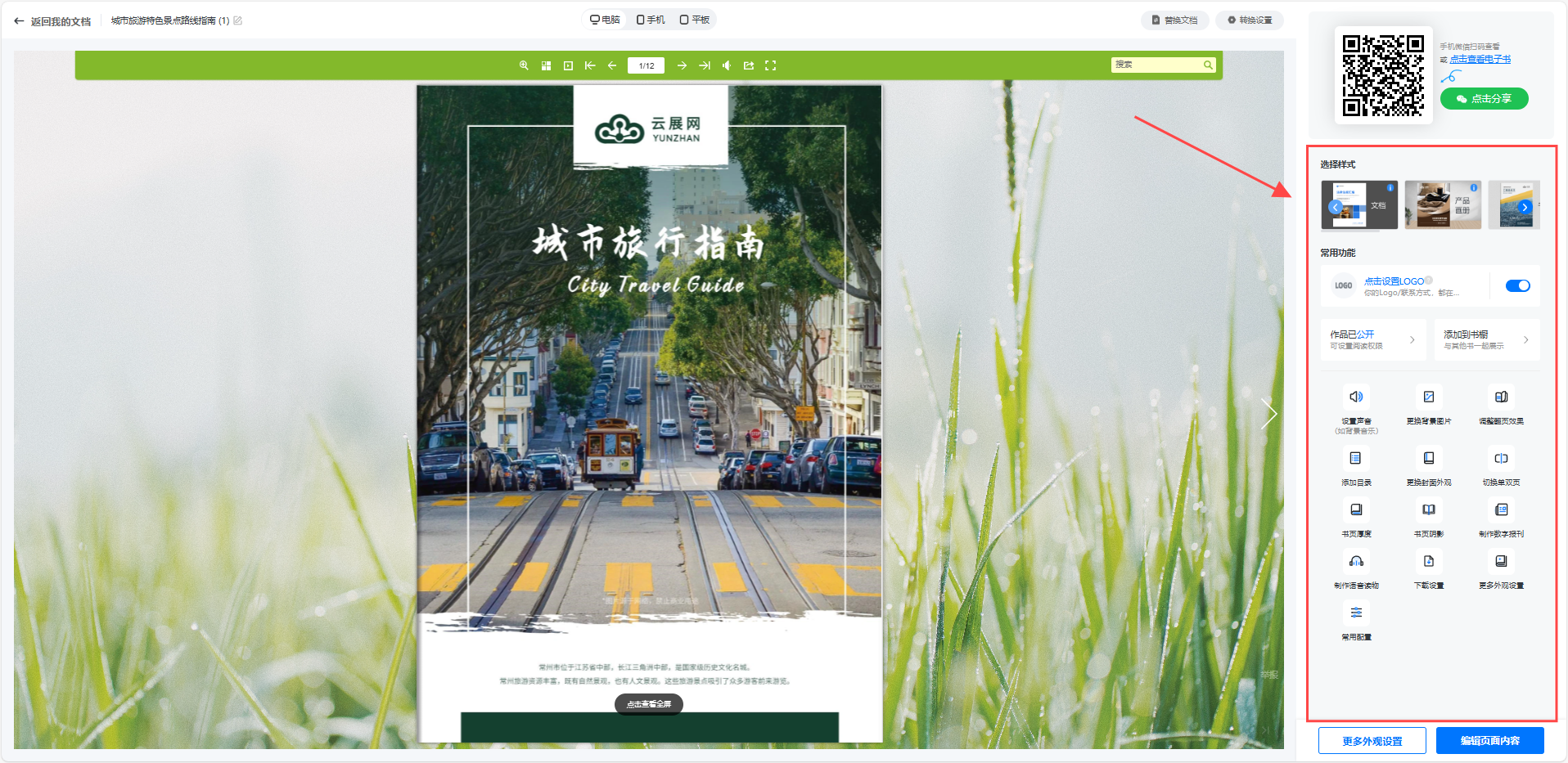 也可點(diǎn)擊【更多外觀設(shè)置】編輯電子書(shū),或【編輯頁(yè)面內(nèi)容】設(shè)置電子書(shū)的外觀樣式。