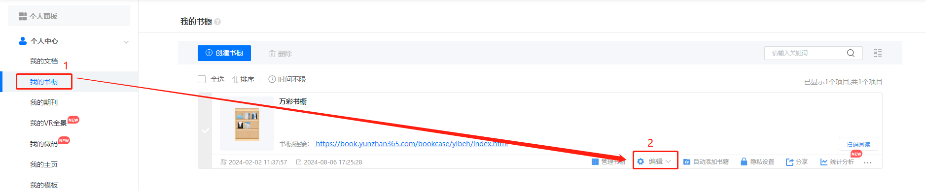 點擊【我的書櫥】找到對應(yīng)書櫥,點擊【編輯】,進(jìn)入編輯界面。
