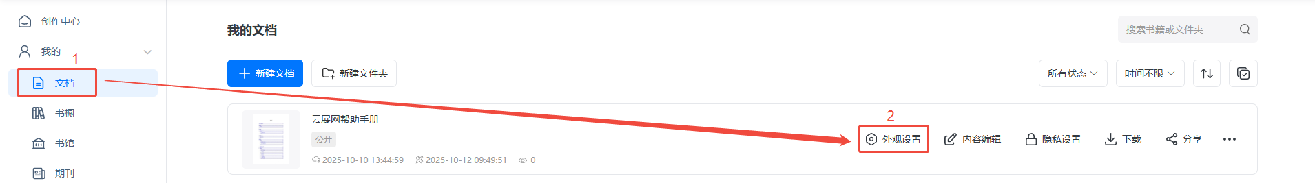 在【文檔】找到需要設(shè)置的電子書,點擊【外觀設(shè)置】進入。