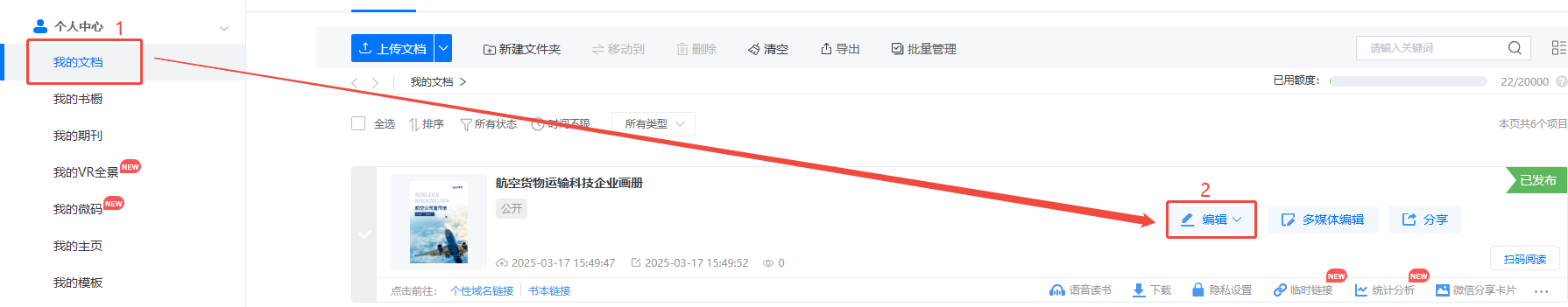 點擊【我的文檔】,然后點擊【編輯】,打開編輯界面。