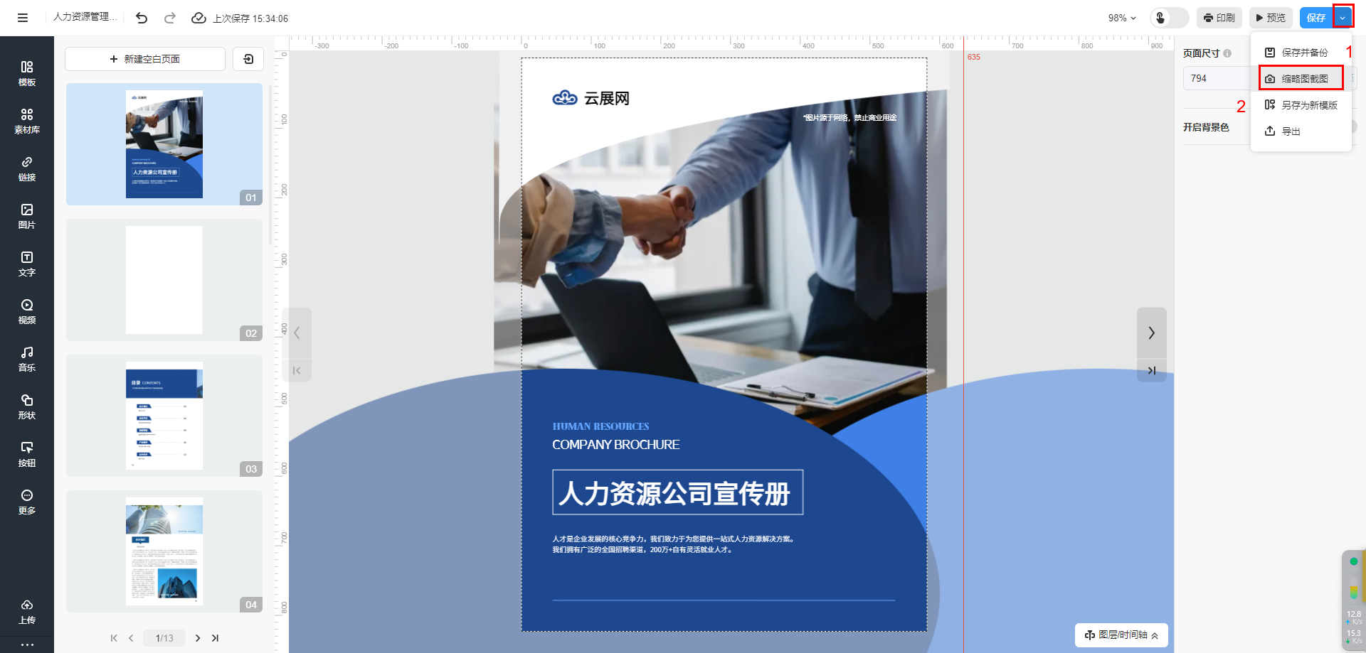 點擊保存右側(cè)下拉鍵,選擇縮略圖截圖