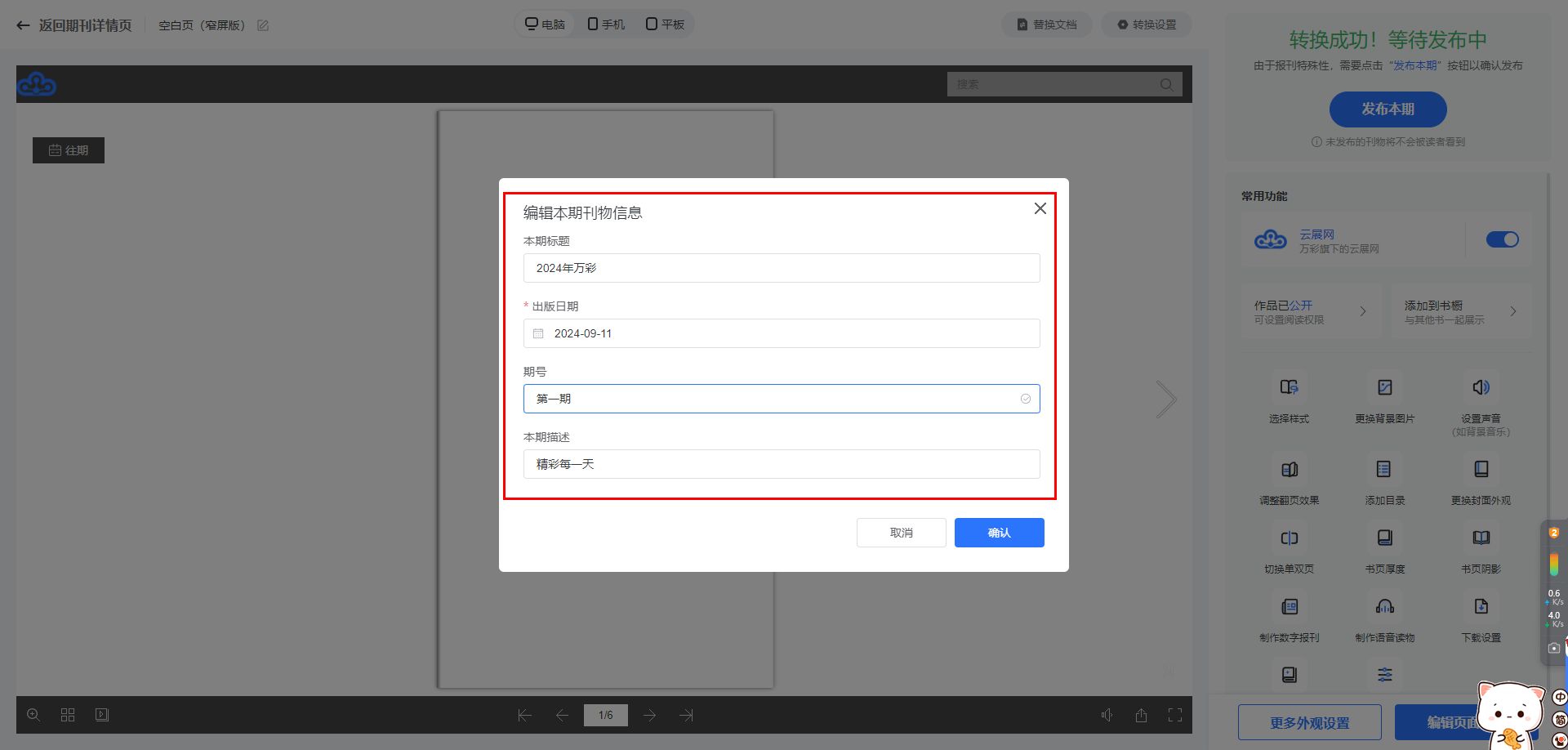 (3)設(shè)置刊物信息后發(fā)布