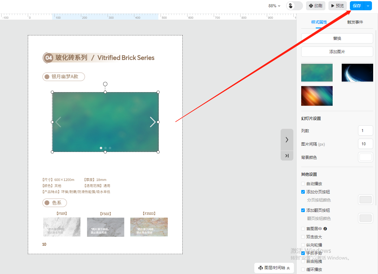 當(dāng)有很多圖片需要展示到電子書上時(shí),可以使用云展網(wǎng)上的幻燈片功能實(shí)現(xiàn),將圖片組合起來(lái)以輪播的形式展示,動(dòng)態(tài)的幻燈片界面可以使我們的電子書更加的出色。