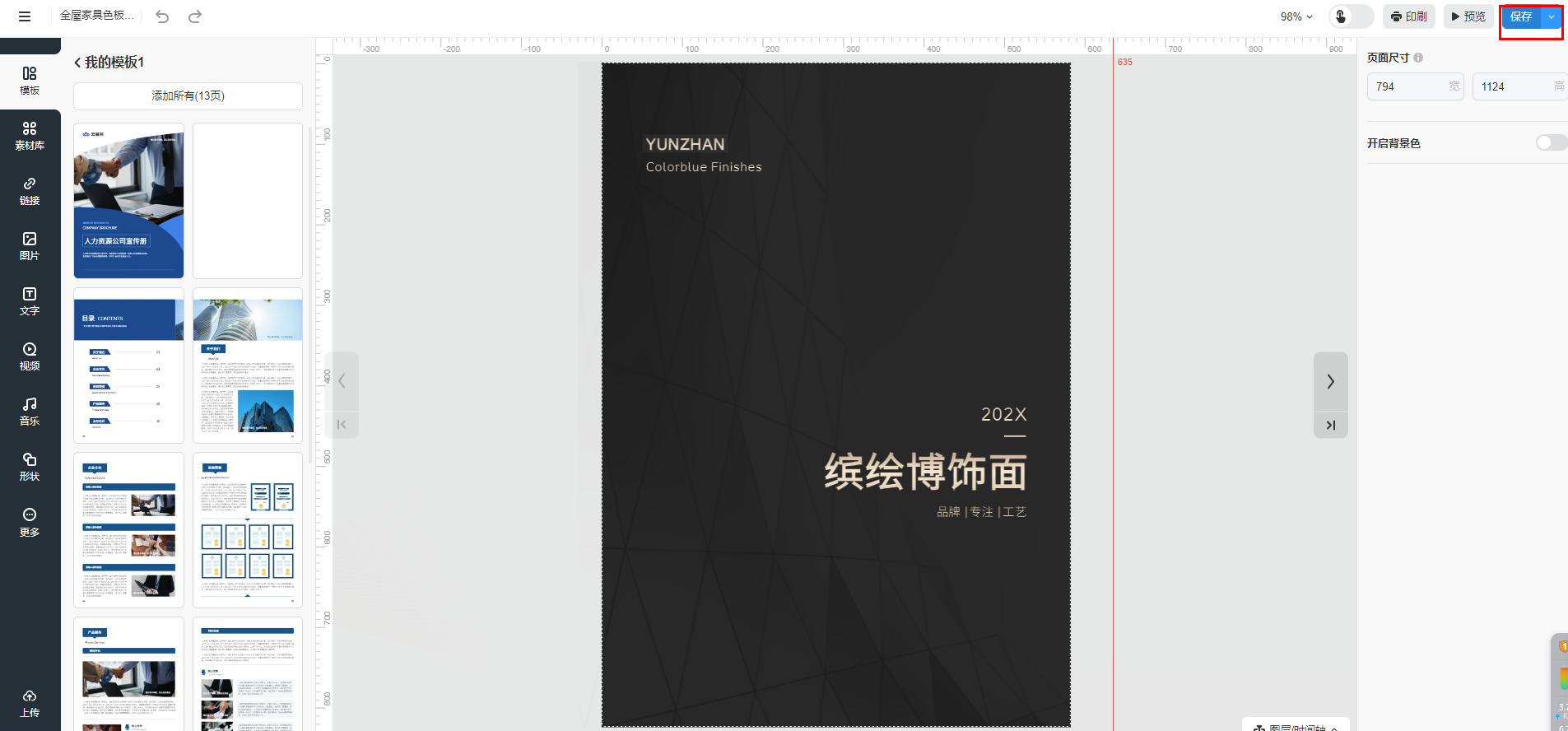 2.上傳已經(jīng)設(shè)計好的文檔制作的電子書即使另存成了模板,也無法更改其中文字和素材。