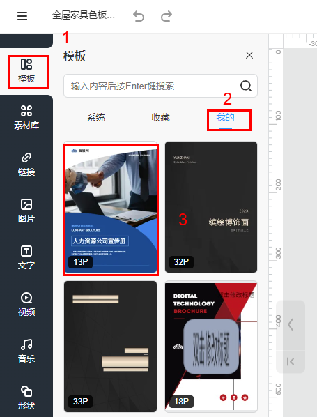 (2)點擊【模板】,【我的】,找到你要應(yīng)用的模板