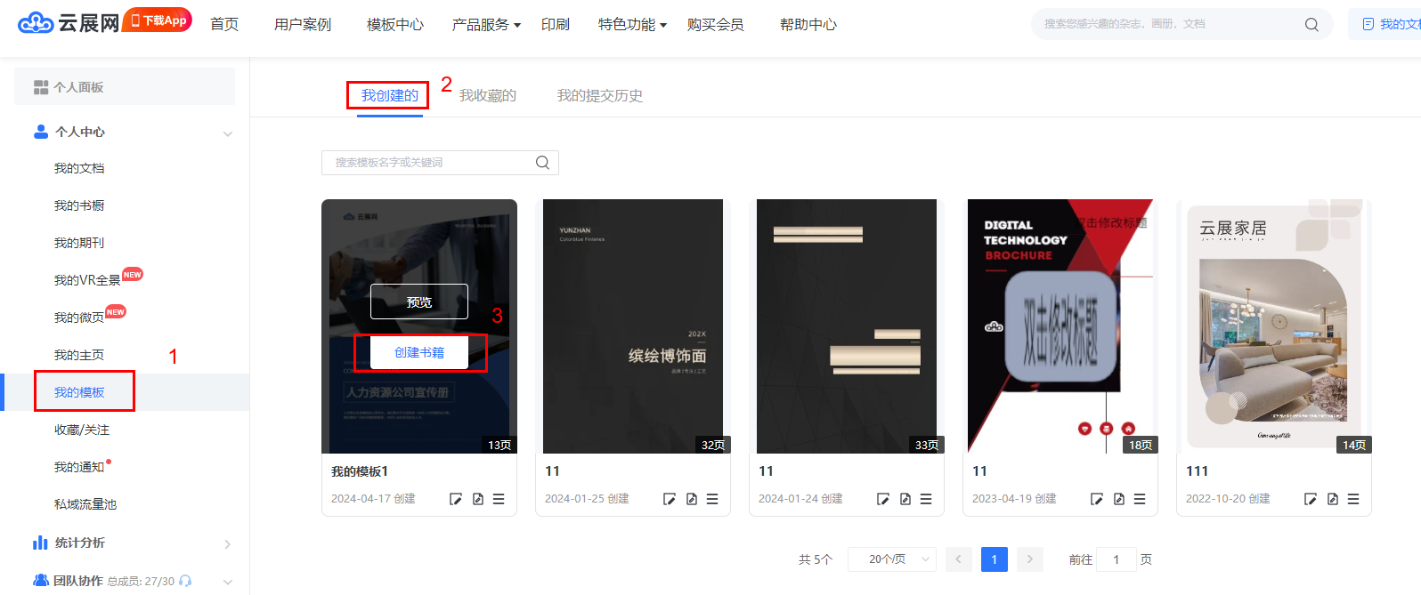(4)另存的新模板會保存在【我的模板】/【我創(chuàng)建的模板】中,如果需要使用該模板進(jìn)行制作,則點擊【創(chuàng)建書籍】即可