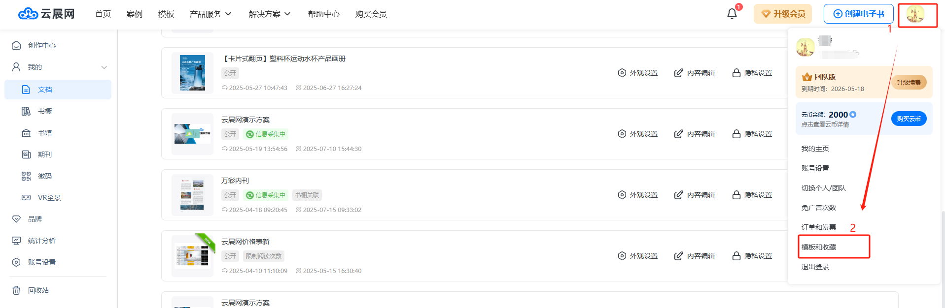 (1)在【我的文檔】/【文檔】中找到需要應(yīng)用模板的書,點擊【多媒體編輯】/【內(nèi)容編輯】