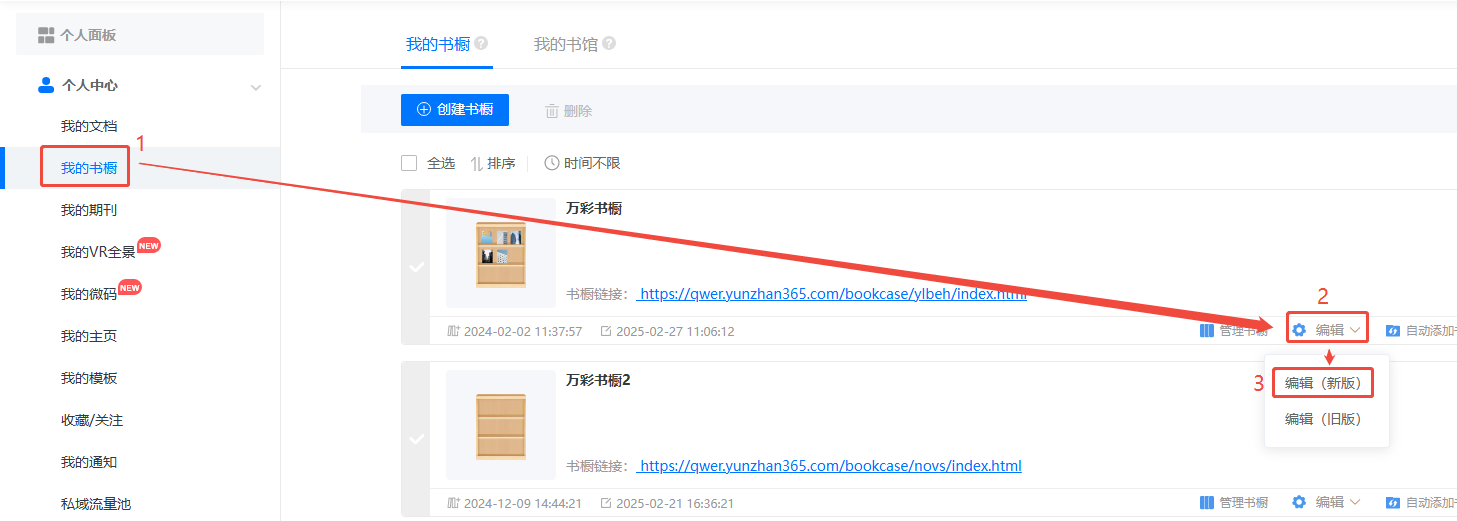 4、打開書櫥的新版編輯界面