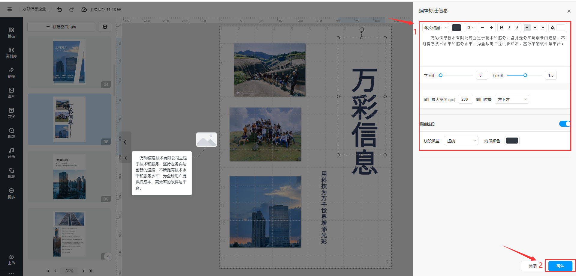 點擊【編輯標注信息】,編輯標注內(nèi)容,編輯好后點擊【確認】