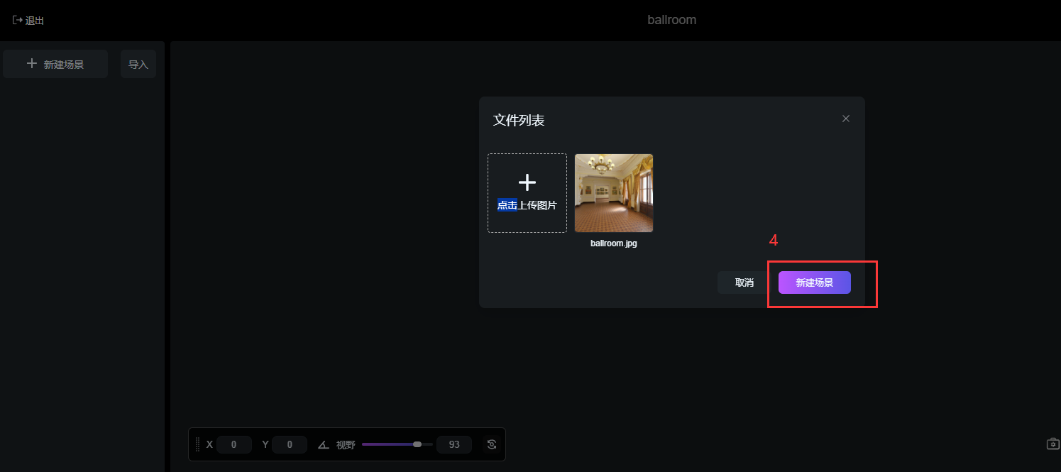 點(diǎn)擊【新建場(chǎng)景】添加內(nèi)置豐富的VR全景場(chǎng)景