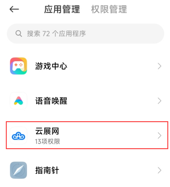 3、點擊“應(yīng)用權(quán)限管理”