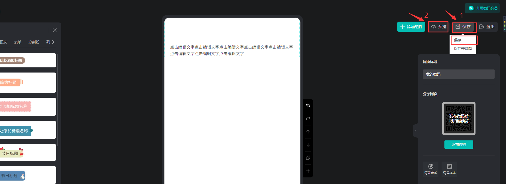 微碼可以自定義添加文字排版,設(shè)計(jì)個(gè)性化頁面布局。