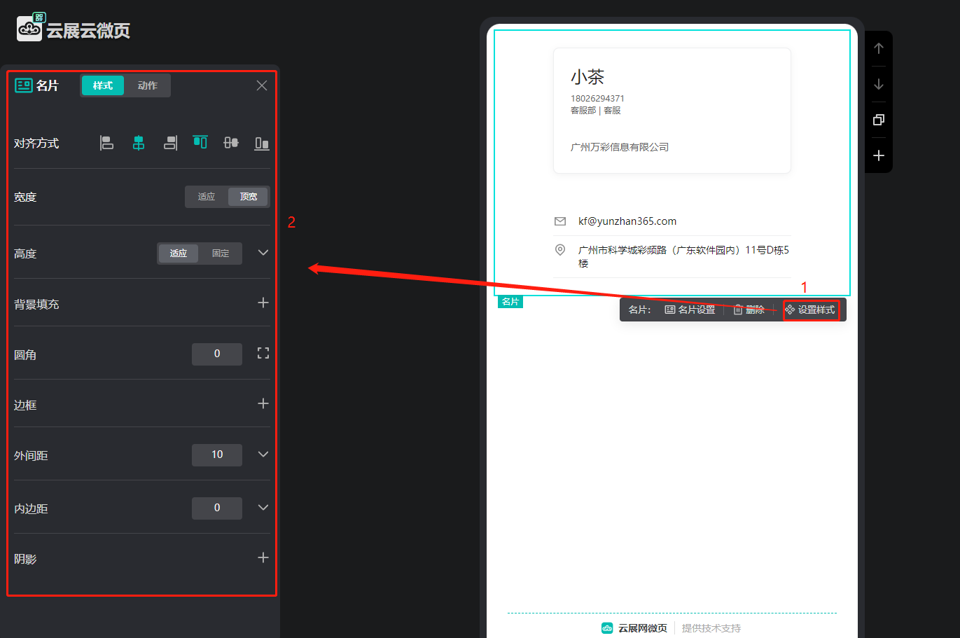 點(diǎn)擊【設(shè)置樣式】,在左側(cè)設(shè)置名片樣式。