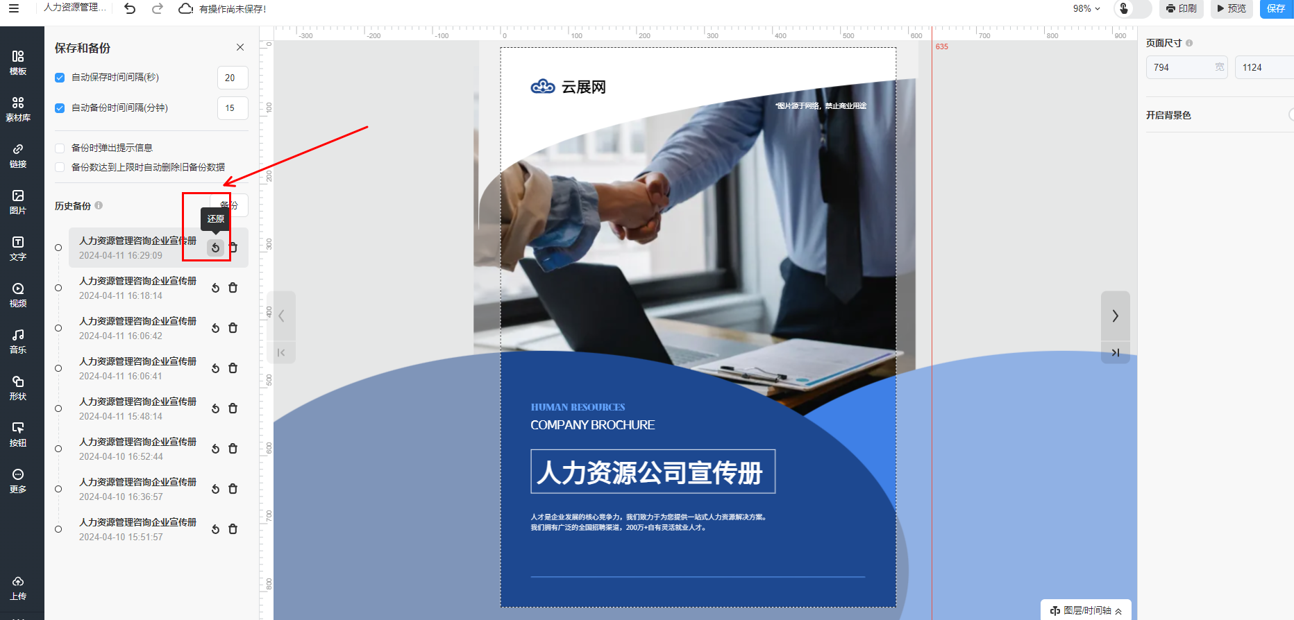 多媒體編輯備份功能,就是可以在線保存用戶在多媒體界面的設(shè)置。如果你要替換PDF/切換引擎/不小心關(guān)閉瀏覽器/斷電等,就可以使用備份數(shù)據(jù)來恢復(fù)當(dāng)時保存的設(shè)置。