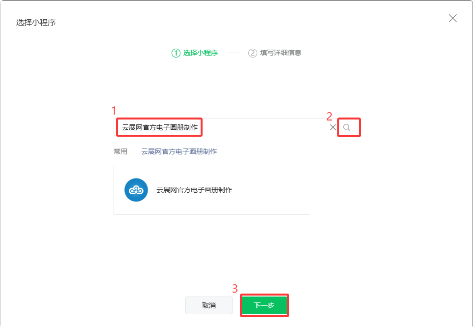 (2)輸入“云展網官方電子畫冊制作”進行搜索