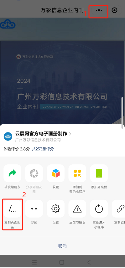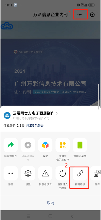 微信掃描書籍小程序二維碼,點擊右上角的【…】按鈕,復制小程序鏈接